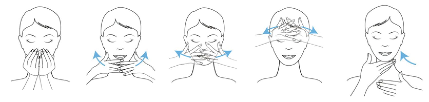 2- Posizionare delicatamente le mani sul mento, scivolare in modo alternato lungo la mascella fino alle orecchie per stimolare il sistema linfatico e aiutare ad eliminare le tossine dal viso.